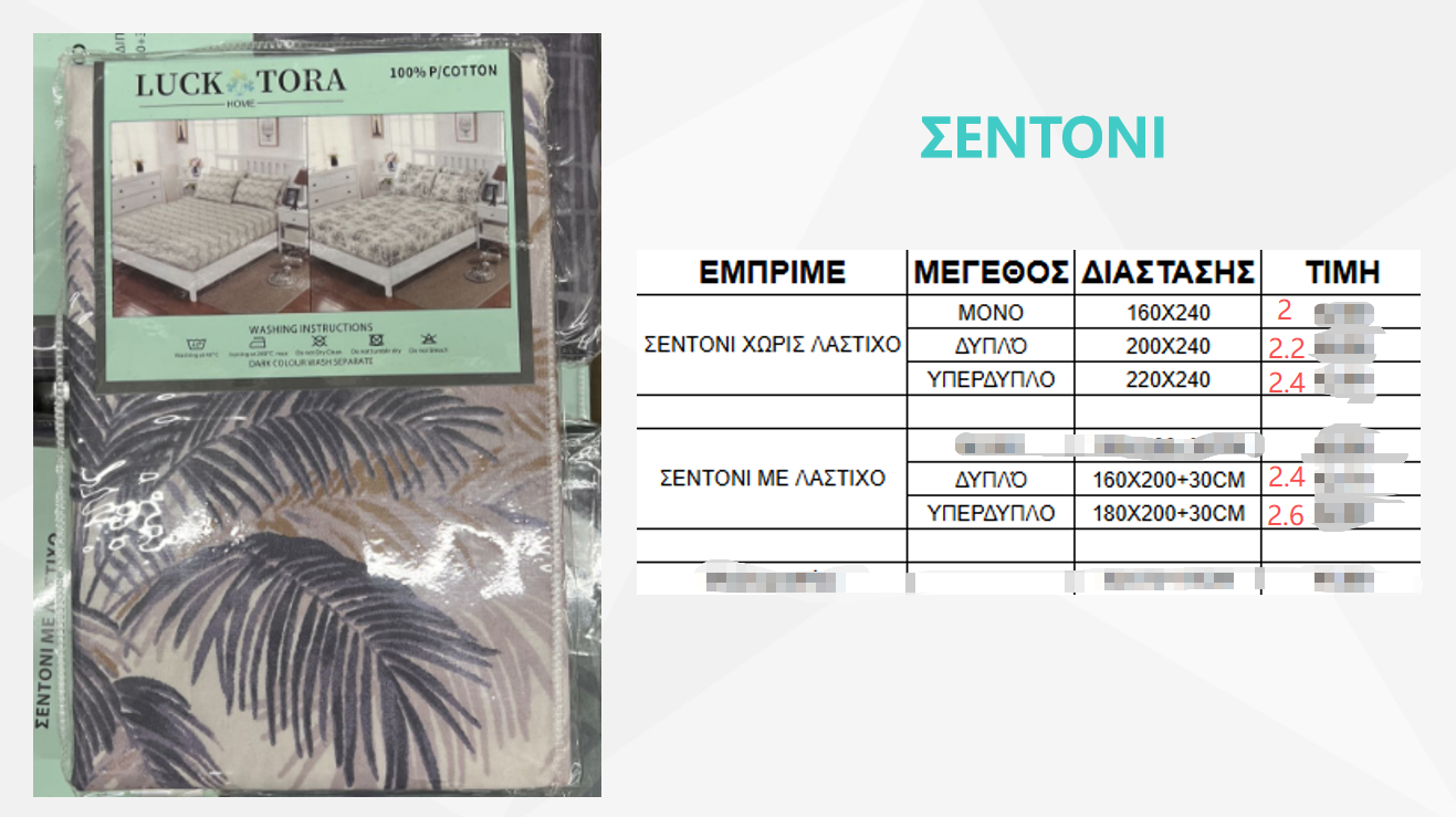 Υπάρχουν πολλά χρώματα και σχέδια ανάλογα με το προϊόν.