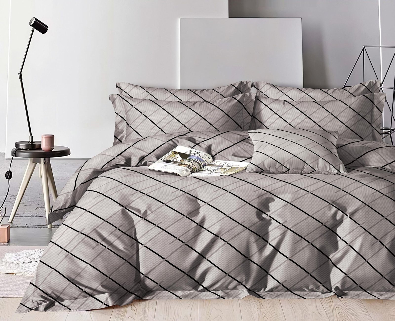 Μοντέρνο σετ σεντόνια με γεωμετρικό σχέδιο, ιδανικό για καθημερινή χρήση σε σπίτι ή επαγγελματικούς χώρους (Airbnb/καταλύματα). Κατασκευασμένο από συνθετικό ύφασμα, προσφέρει εύκολη συντήρηση, αντοχή στη συχνή χρήση και προσεγμένη εμφάνιση στο κρεβάτι.