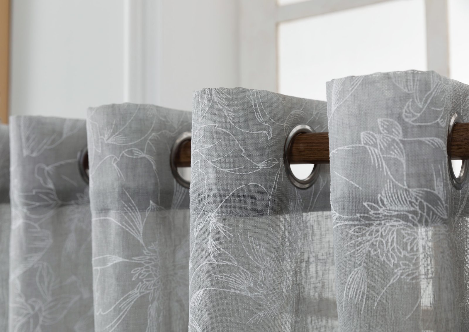 Κουρτίνα A6041-11 με τρουκς – έτοιμη για άμεση τοποθέτηση, με κομψό ανάγλυφο σχέδιο. Φιλτράρει το φως και δημιουργεί μια πιο ζεστή και ευχάριστη ατμόσφαιρα στον χώρο.