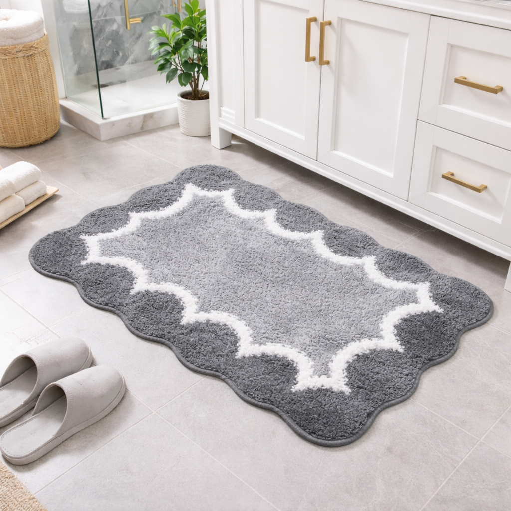 Το χαλάκι μπάνιου από super microfiber με κυματιστό σχέδιο είναι μια κομψή και πρακτική επιλογή για το μπάνιο σας.Η απαλή υφή του προσφέρει ευχάριστη αίσθηση στα πόδια, ενώ βοηθά στην απορρόφηση της υγρασίας μετά το μπάνιο ή το ντους.Το ιδιαίτερο wave σχέδιο του δίνει πιο διακοσμητικό χαρακτήρα και ταιριάζει εύκολα τόσο σε μοντέρνους όσο και σε πιο κλασικούς χώρους.