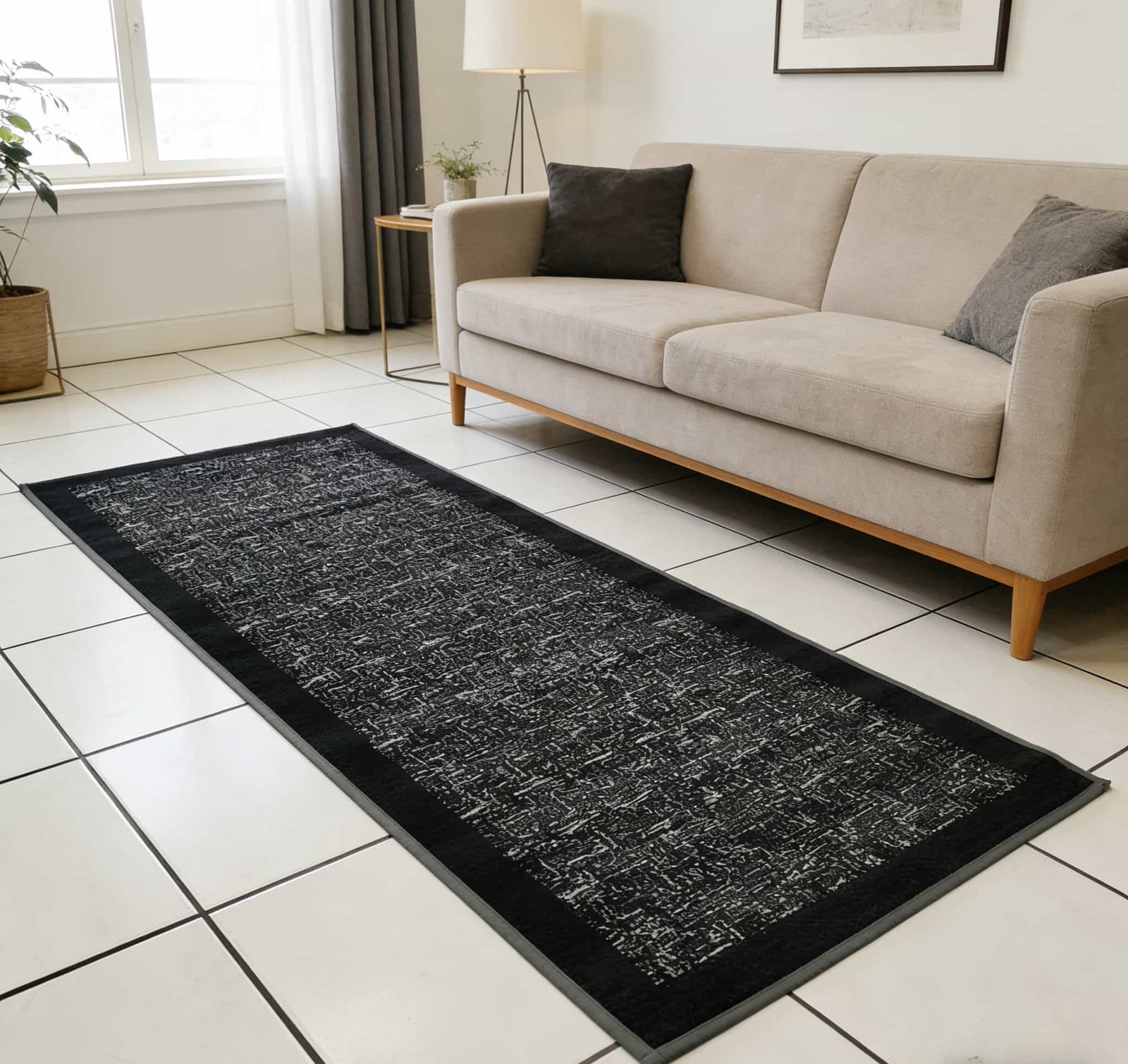 Κομψό πατάκι / χαλάκι – Υφαντό ζακάρ (Jacquard), ιδανικό για να δώσει “ζεστασιά” και τάξη σε σαλόνι, χωλ, διάδρομο ή υπνοδωμάτιο. Η ζακάρ ύφανση προσφέρει πιο πλούσια όψη και καθαρή αποτύπωση του μοτίβου, ενώ το πατάκι στρώνει όμορφα στο πάτωμα για καθημερινή χρήση.