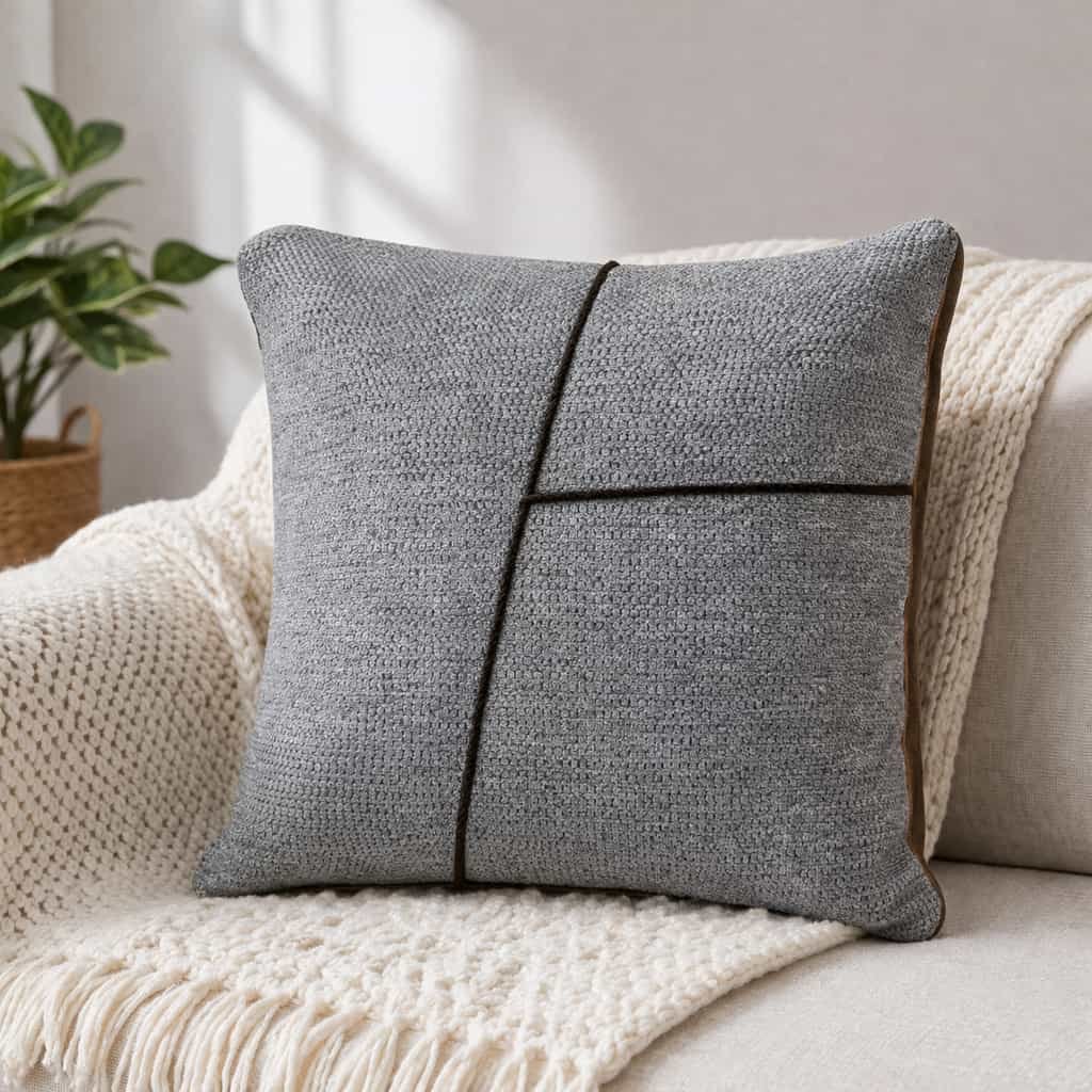 Διακοσμητική μαξιλαροθήκη 45x45 cm με κομψό κεντρικό σχέδιο patchwork. Ο συνδυασμός χρωμάτων δίνει μοντέρνα και ήρεμη αισθητική, ιδανική για καναπέ, πολυθρόνα ή κρεβάτι.