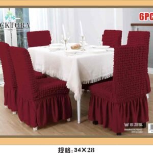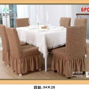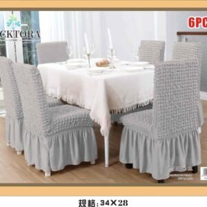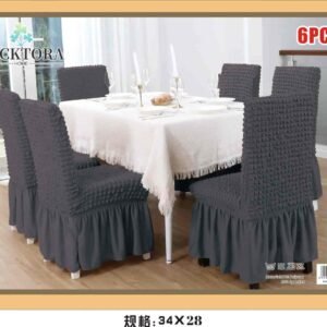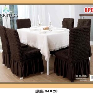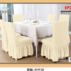 Σετ 6τμχ Ελαστικά Καλύμματα Καρέκλας Με Βολάν. Ανανεώστε την τραπεζαρία σας με τα μοντέρνα και κομψά ελαστικά καλύμματα της που εφαρμόζουν σε όλα τα μεγέθη καρέκλας! Αποκτήστε τα σε όμορφα χρώματα που θα ταιριάξουν με κάθε τραπεζαρία και αλλάξτε την όψη της! Τα καλύμματα καλύπτουν όλη την καρέκλα, το ύφασμα είναι ελαστικό στο κάθισμα και στην πλάτη και σταθερό από το κάθισμα και κάτω. Εφαρμόζουν σχεδόν σε όλες τις καρέκλες , ακόμα και σε καρέκλες με στρογγυλή πλάτη (αχιβάδα). Ανανεώστε τις καρέκλες της τραπεζαρίας σας, προστατέψτε τις από λεκέδες, σκόνη, λαδιές και βρωμιές.