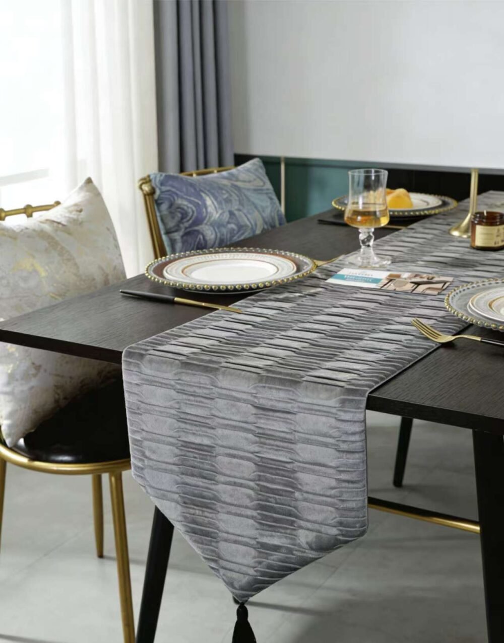 Το τραβέρσα τοποθετείται εύκολα στο κέντρο ή κατά μήκος του τραπεζιού, επιτρέποντας την ανάδειξη της επιφάνειας χωρίς να την καλύπτει πλήρως. Συνδυάζεται αρμονικά με σερβίτσια, κεντρικά διακοσμητικά και άλλα στοιχεία τραπεζιού, δημιουργώντας ένα προσεγμένο και καλαίσθητο αποτέλεσμα. Είναι ιδανικό για όσους επιθυμούν μια διακριτική διακόσμηση χωρίς υπερβολές.