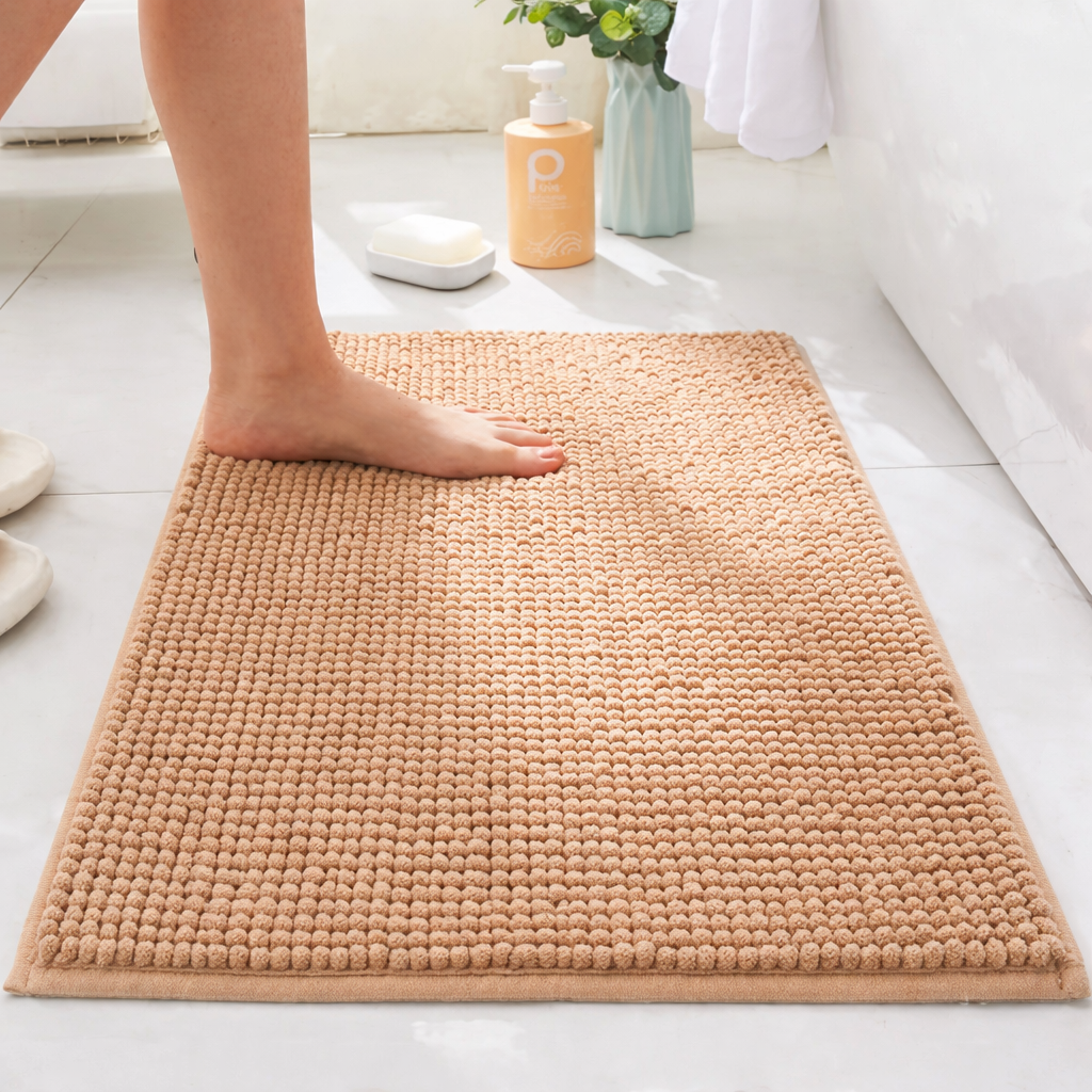 Το χαλάκι μπάνιου από κοντή σενίλ με θερμοκολλημένη αντιολισθητική βάση συνδυάζει άνεση, πρακτικότητα και αντοχή για καθημερινή χρήση. Η μαλακή επιφάνεια από σενίλ προσφέρει ευχάριστη αίσθηση στο πάτημα, ενώ η αντιολισθητική βάση βοηθά το χαλάκι να μένει πιο σταθερό στο δάπεδο. Είναι ιδανικό για μπάνιο, WC ή χώρους κοντά σε νιπτήρα και μπανιέρα, προσφέροντας πιο άνετο και προσεγμένο αποτέλεσμα στον χώρο.