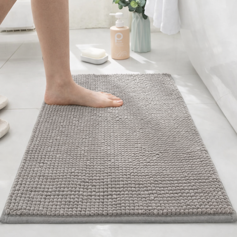 Το χαλάκι μπάνιου από κοντή σενίλ με θερμοκολλημένη αντιολισθητική βάση συνδυάζει άνεση, πρακτικότητα και αντοχή για καθημερινή χρήση. Η μαλακή επιφάνεια από σενίλ προσφέρει ευχάριστη αίσθηση στο πάτημα, ενώ η αντιολισθητική βάση βοηθά το χαλάκι να μένει πιο σταθερό στο δάπεδο. Είναι ιδανικό για μπάνιο, WC ή χώρους κοντά σε νιπτήρα και μπανιέρα, προσφέροντας πιο άνετο και προσεγμένο αποτέλεσμα στον χώρο.
